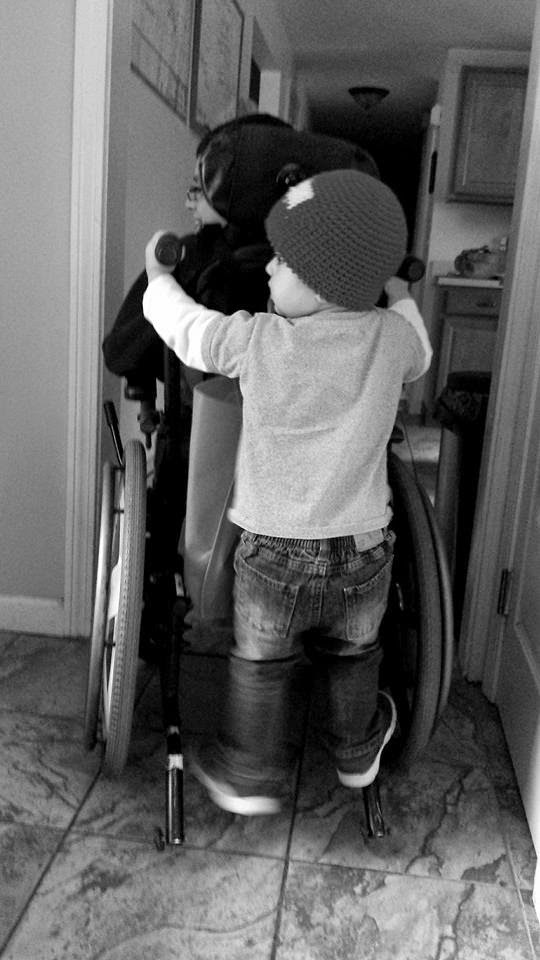 Raising him causes me a ton of stress. I think raising any child does. Who knew?! It is more my fault due to my personality. I constantly worry about him. I constantly think i don't do enough for him. He is also heavy! He can't stand on his own. He can't walk up steps even holding onto him. He can't get into his walker or wheelchair on his own. He can't go to the bathroom on his own. He can't just go get snack or a drink on his own. We have to do everything! Sometimes I go a bit nutty when I am am with all the kids all day because I feel like one of them is always asking me to do something or get something~and I mean constantly! It puts a toll on my body. I lift him constantly. When he is around my brain is non stop partly because he doesn't stop talking or asking questions and partly because when he is quiet and playing on the computer and I am thinking he should be exercising or walking around and I blame myself for letting him have some down time. I am working on it!! :)