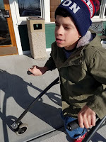 Breaks don't happen around here. Today I got a call at 7:30 am that his smart drive by max mobility arrived and his PT's boss basically text the mobiity company to say that she wouldn't be there. I was NEVER even informed his device was ordered or being delivered today but thankfully due to owning our own business I was able to go to a 10:30 am meeting so that he could get his power assist device. Now this is super exciting. It basically gives his manual wheelchair power assist. It will save his shoulders and arms from getting a beating wheeling himself around his whole life. I have never wanted a power wheelchair. I know he will have one some day but not yet. He is awesome with his manual chair and it has been great therapy for him. This item allows us to keep his small chair yet give him some relief. He needs to learn how to use it but I know he will. I took some videos of him learning today. We just need the weather to warm up so we can go outside and practice. It is really neat. He got the newest version and insurance paid for it. So today was a bit of a happy day even though those lurking feelings inside of me keep wanting to creep out. I am not allowing them but I am pretty grumpy today.
