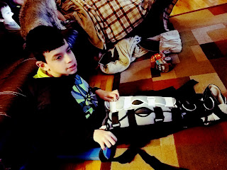 Even with everything going on I had him sit in his knee immobilizers for over an hour tonight and stretched his quads